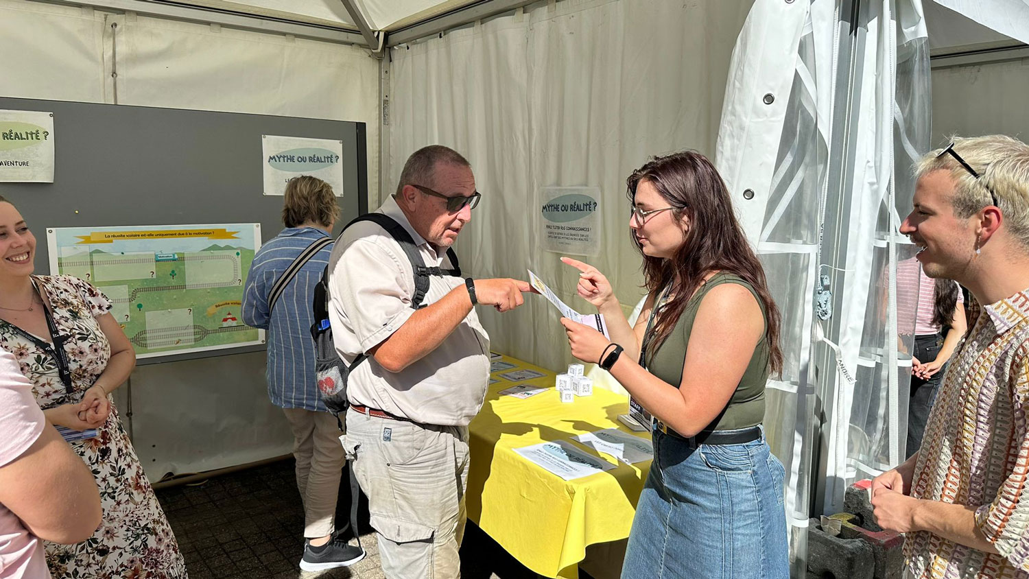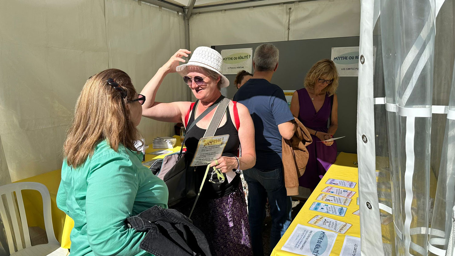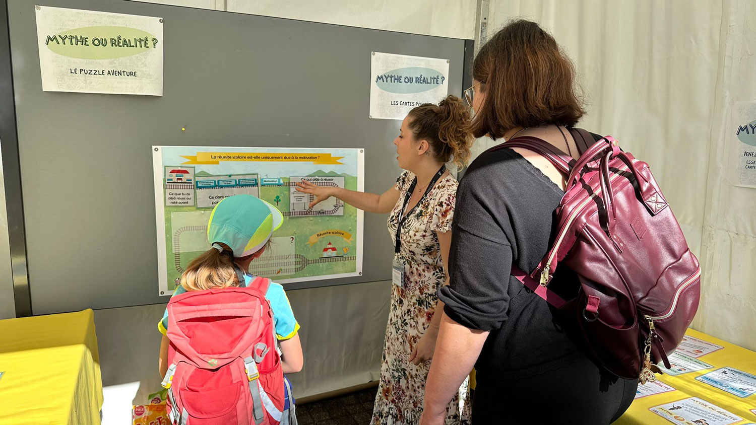 Le jeu de cartes « Mythe ou réalité » invitait les participants à choisir entre ces deux options face à différentes affirmations sur l’éducation. Les réponses et les informations complémentaires étaient disponibles au dos de chaque carte, permettant aux visiteurs de découvrir ce qui relève du mythe ou de la réalité scientifique.